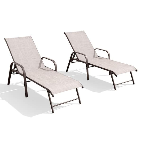 Brown 2-Piece Aluminum Adjustable Outdoor Patio Chaise Lounge in Beige with Armrest
