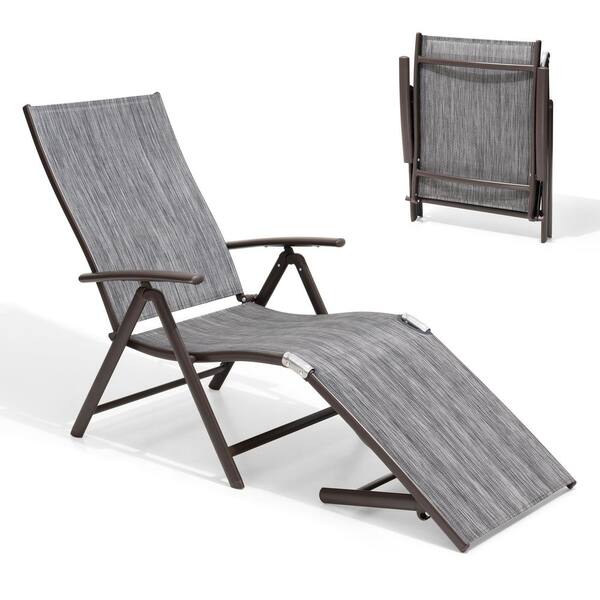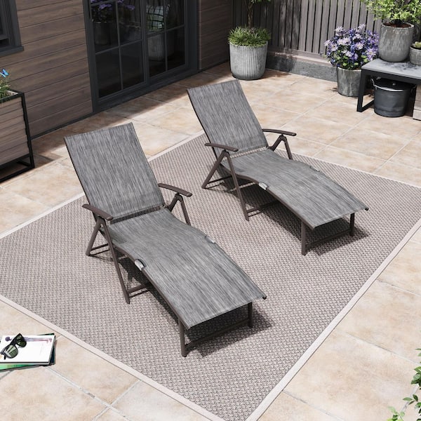 Brown 2-Piece Aluminum Metal Folding Outdoor Chaise Lounge with Adjustable Back in Black and Gray