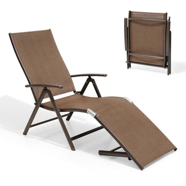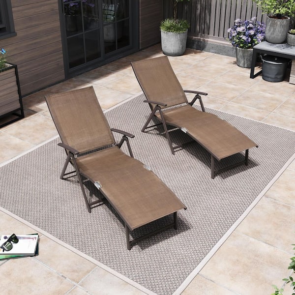Brown 2-Piece Aluminum Metal Folding Outdoor Chaise Lounge with Adjustable Back in Brown