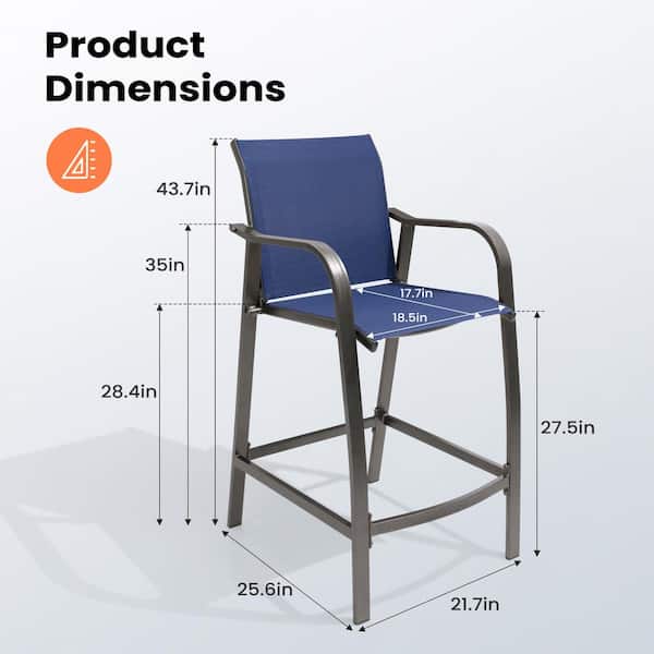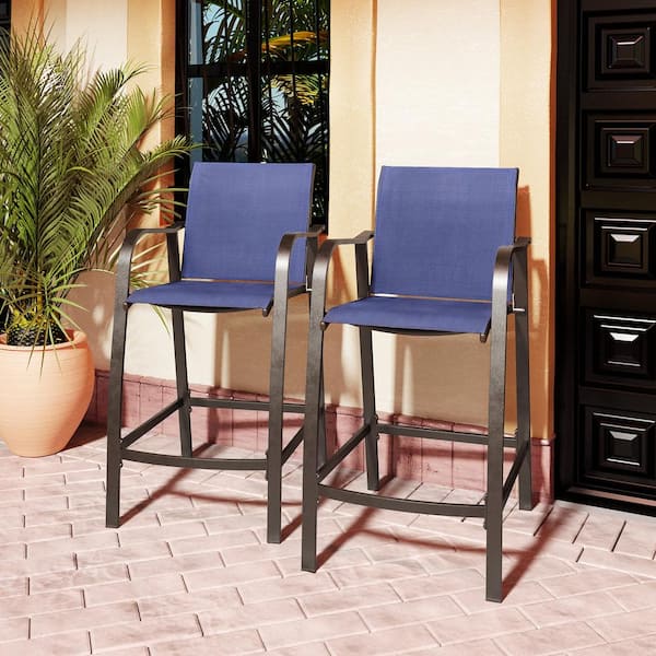 Counter Height Metal Aluminum Outdoor Bar Stool with Arms in Navy Blue (2-Pack)