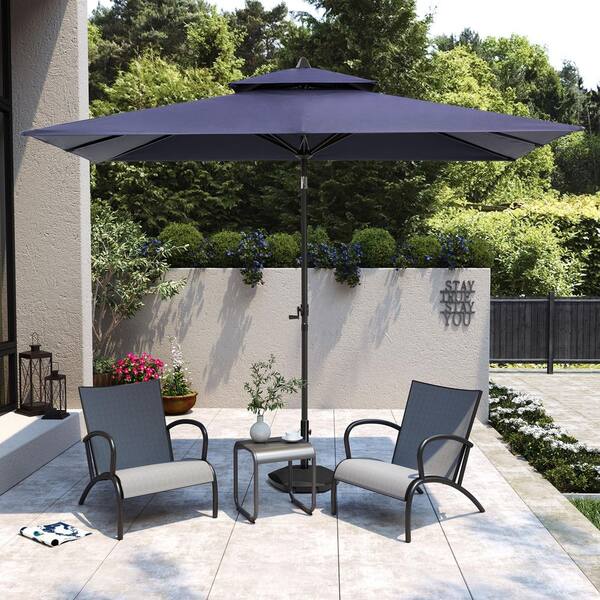 Double Top 10 ft. x 6.5 ft. Rectangular Aluminum Market Crank and Tilt Patio Umbrella in Navy Blue