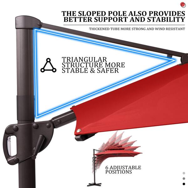 Double Top 11 ft. x 9 ft. Aluminum 360° Rotation Cantilever Patio Umbrella in Red with 240 lbs. HDPE Square Base