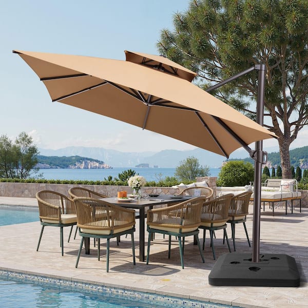 Double Top 12.5 ft. x 10 ft. Aluminum Heavy-Duty 360° Rotation Cantilever Patio Umbrella in Tan with 240 lbs. Base