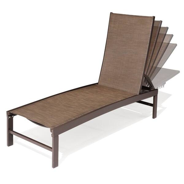 Full Flat 1-Piece Adjustable Aluminum Outdoor Chaise Lounge with Brown Textilence