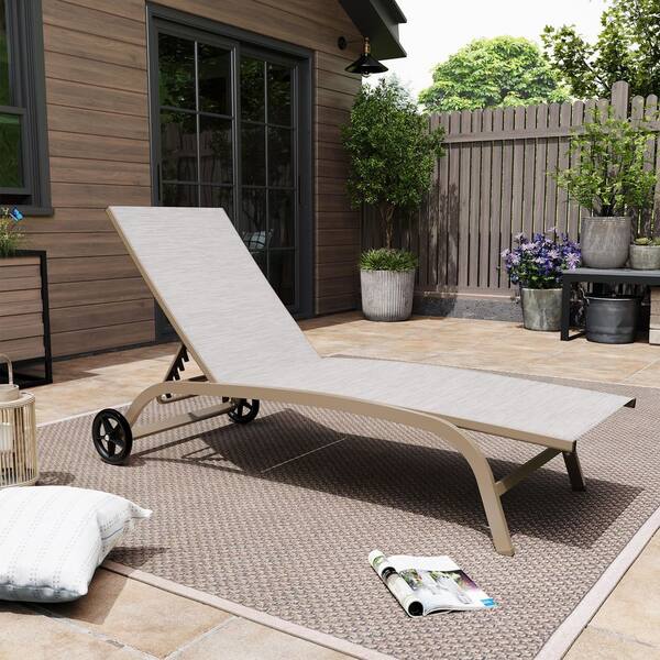 Full Flat 1-Piece Aluminum Adjustable Outdoor Chaise Lounge in White Gray with Wheels