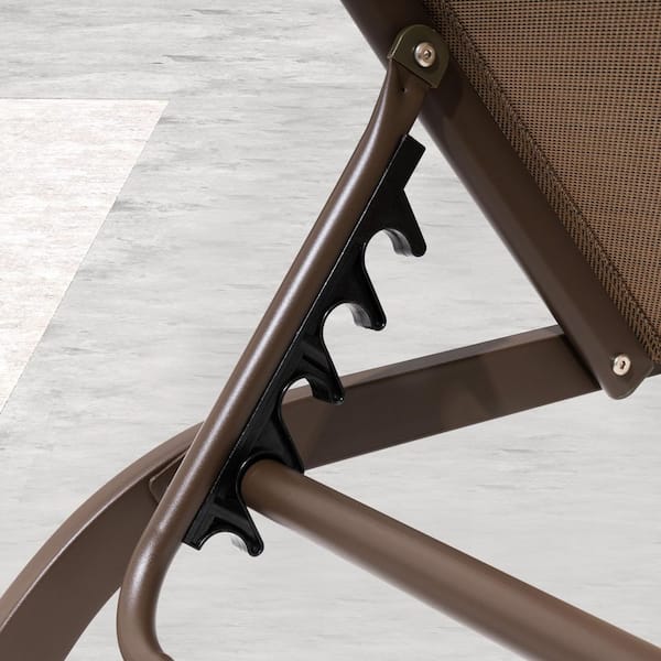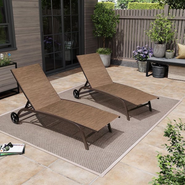 Full Flat 2-Piece Aluminum Outdoor Chaise Lounge in Brown with Wheels