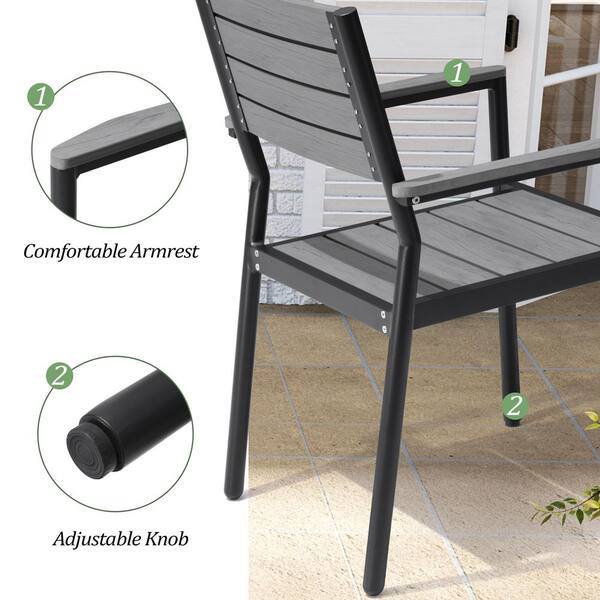 Gray 13-Piece 118 in. Aluminum Wood-Like Rectangular Patio Outdoor Dining Set with Stackable Arm-Chairs, Umbrella Hole