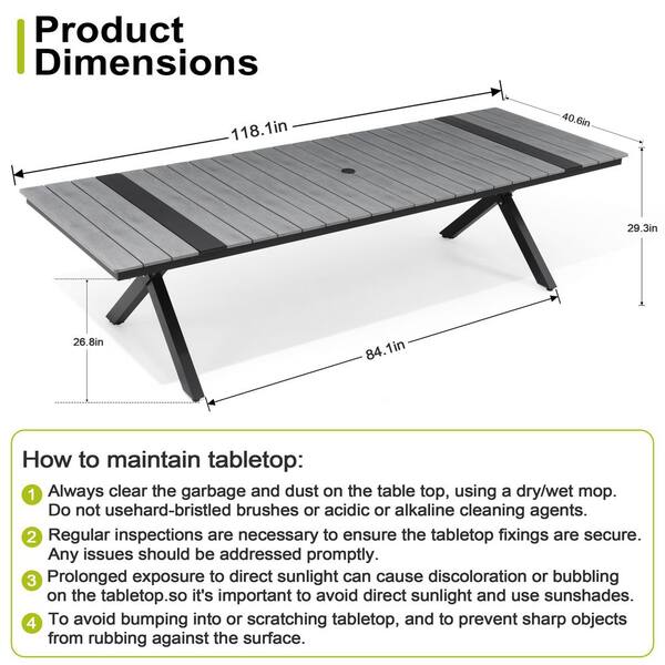 Gray 13-Piece 118 in. Aluminum Wood-Like Rectangular Patio Outdoor Dining Set with Stackable Arm-Chairs, Umbrella Hole
