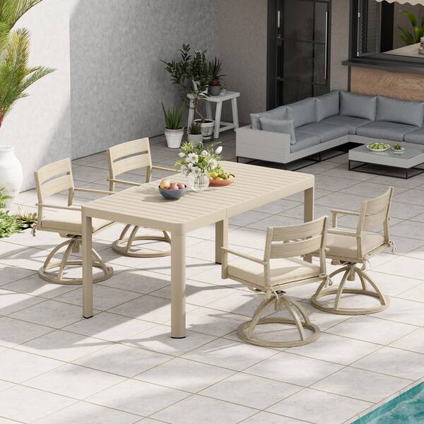 High-Grade Wood-Grain Swivel Aluminum Patio Outdoor Dining Chair with Sunbrella Canvas Antique Beige Cushion (4-Pack)