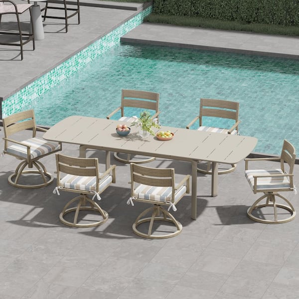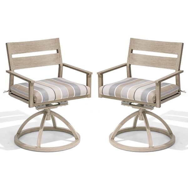 High-Grade Wood-Grain Swivel Aluminum Patio Outdoor Dining Chair with Sunbrella MILANO CHAR Striped Cushion (2-Pack)
