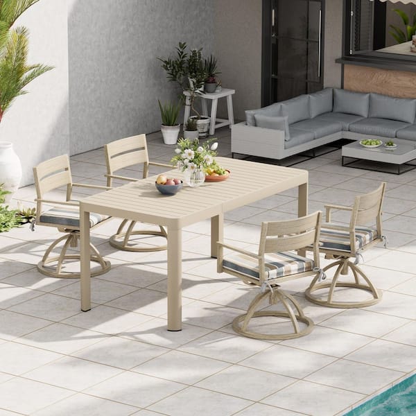 High-Grade Wood-Grain Swivel Aluminum Patio Outdoor Dining Chair with Sunbrella MILANO CHAR Striped Cushion (4-Pack)