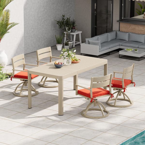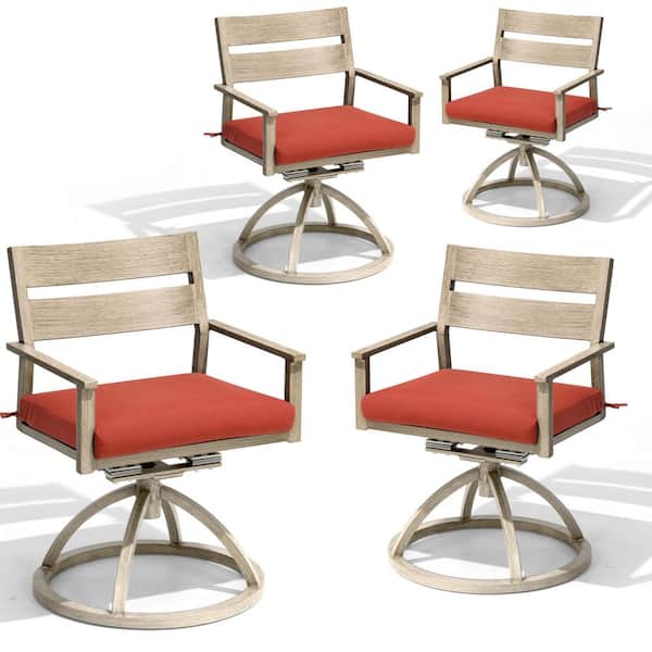 High-Grade Wood-Grain Swivel Aluminum Patio Outdoor Dining Chair with Sunbrella Red Cushion (4-Pack)