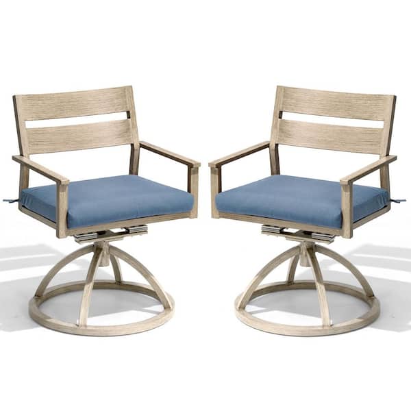 High-Grade Wood-Grain Swivel Aluminum Patio Outdoor Dining Chair with Sunbrella Spectrum Denim Blue Cushion (2-Pack)