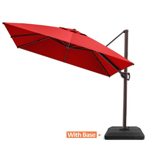 Outdoor 11.5 ft. Square Heavy Duty Offset Cantilever Patio Umbrella in Red with Stand Weights for Deck Pool Garden