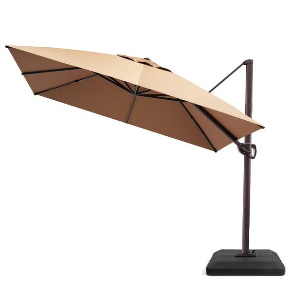 Outdoor 11.5 ft. Square Heavy Duty Offset Cantilever Patio Umbrella in Tan with Stand Weights for Deck Pool Garden
