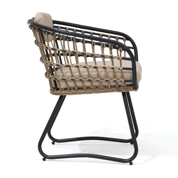 Outdoor Patio Wicker Dining Chairs PE Rattan Seating Set with Beige Cushion (Set of 8)