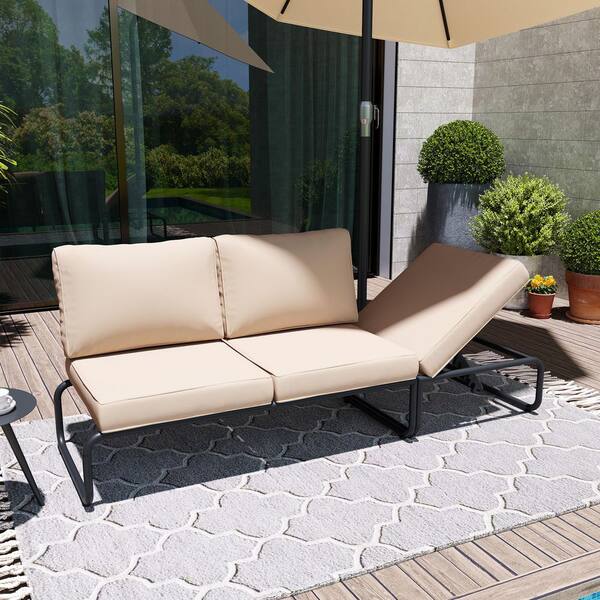 Patio Aluminum Adjustable Outdoor Day Bed Sofa with Beige Cushions