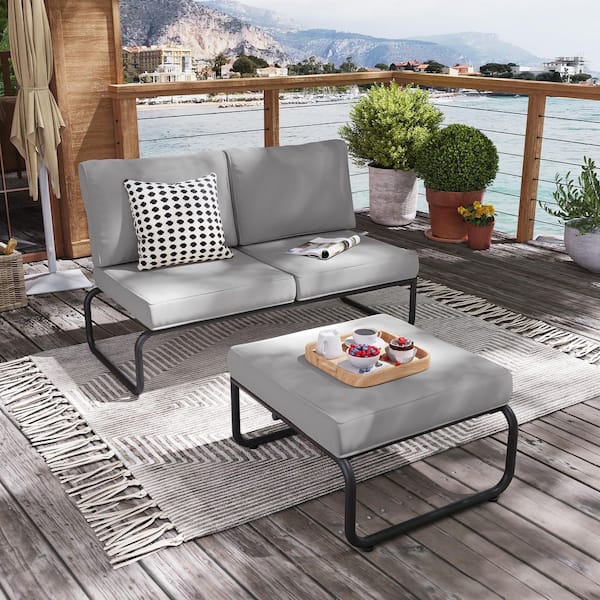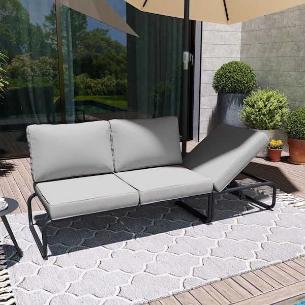 Patio Aluminum Adjustable Outdoor Day Bed Sofa with LightGray Cushions