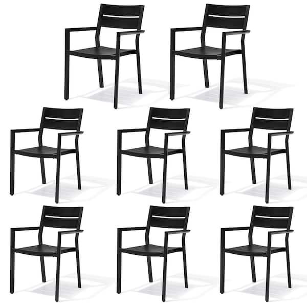 Patio Stackable Aluminum Outdoor Dining Chairs in Black Set of 8, with Arms