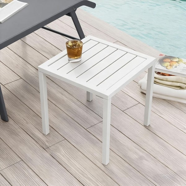 Square Aluminum Outdoor Side Table in White
