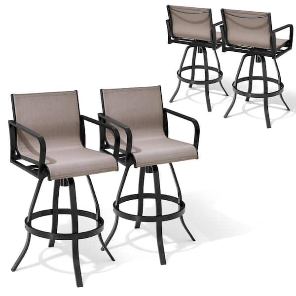 Swivel Aluminum Outdoor Bar Stool in Augustine Ashe Sunbrella Textilene Fabric (2-Pack)