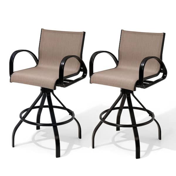 Swivel Aluminum Sunbrella Textilene Mesh Fabric Outdoor Bar Stool (2-Pack) in Augustine Ashe
