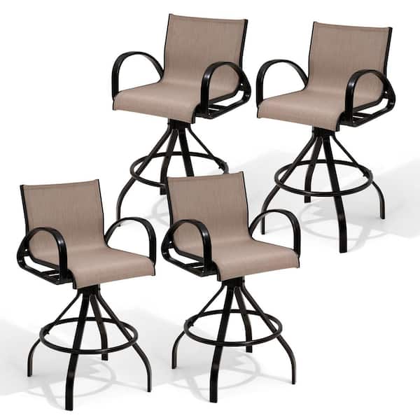 Swivel Aluminum Sunbrella Textilene Mesh Fabric Outdoor Bar Stool (4-Pack) in Augustine Ashe