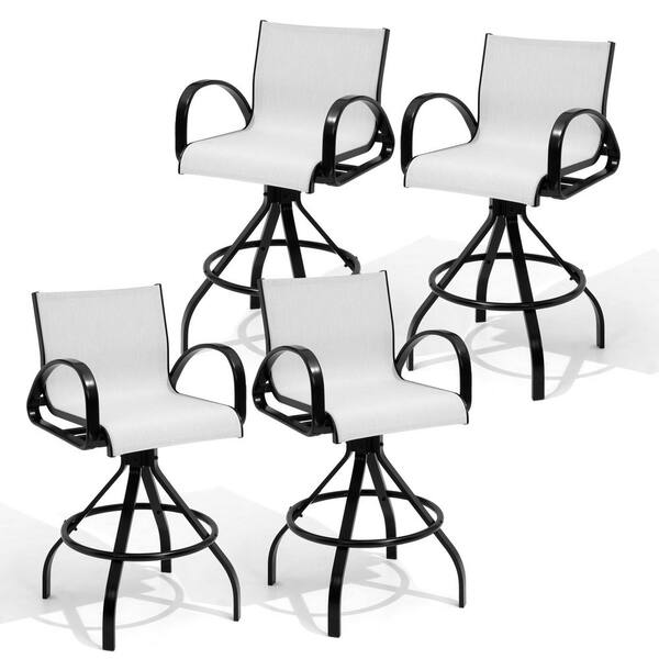 Swivel Aluminum Sunbrella Textilene Mesh Fabric Outdoor Bar Stool (4-Pack) in Augustine Oyster