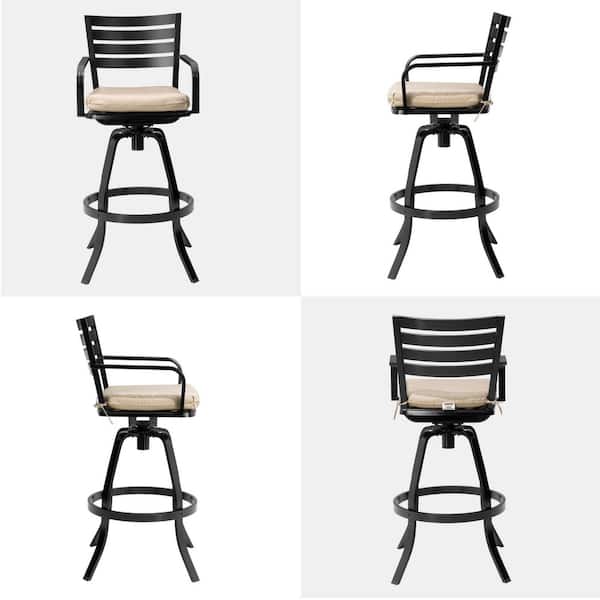 Swivel Cast Aluminum Outdoor Bar Stool with Sunbrella Canvas Antique Beige Cushion (4-Pack)