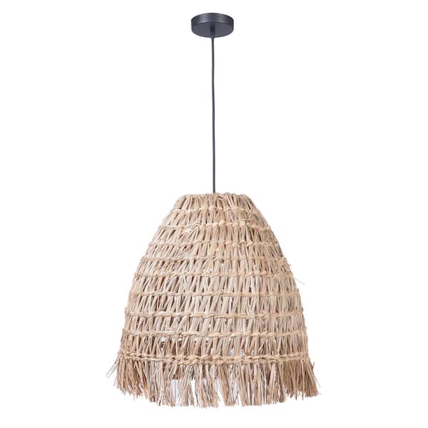 Pendant 60-Watt 1-Light Espresso Finish Dining/Kitchen Island Foyer Pendant Light with Straw Shade, No Bulbs Included