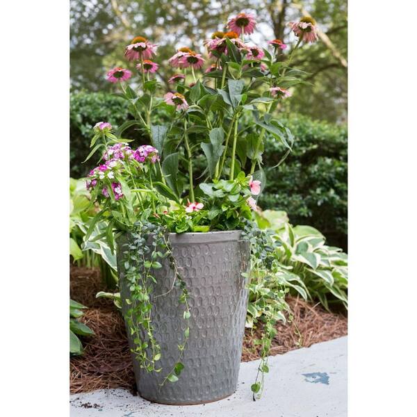 12.5 in. Wet Cement Tall Glazed Ceramic Egg Planter