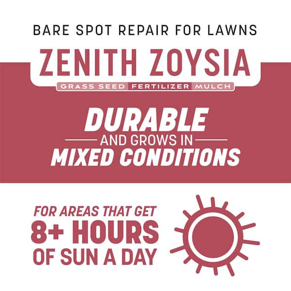 • Zenith zoysia grass seed mix combines mulch, seed and fertilizer