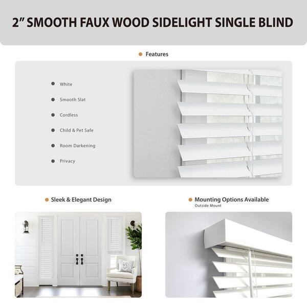 Smooth White Cordless Room Darkening Faux Wood Sidelight Blind with 2 in. Slats - 12 in. W x 72 in. L