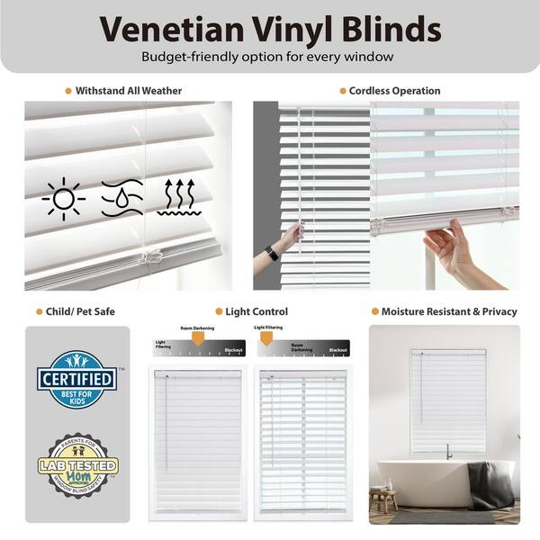 White Cordless Room Darkening Vinyl Blinds with 2 in. Slats - 63 in. W x 60 in. L