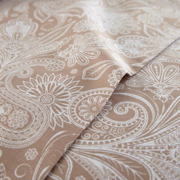 Perfect Paisley 4-Piece White Paisley on Taupe Microfiber California King Deep Pocket Sheet Set