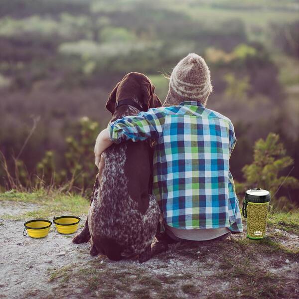 3-in-1 Travel Pet Feeding Containers in Green/Yellow