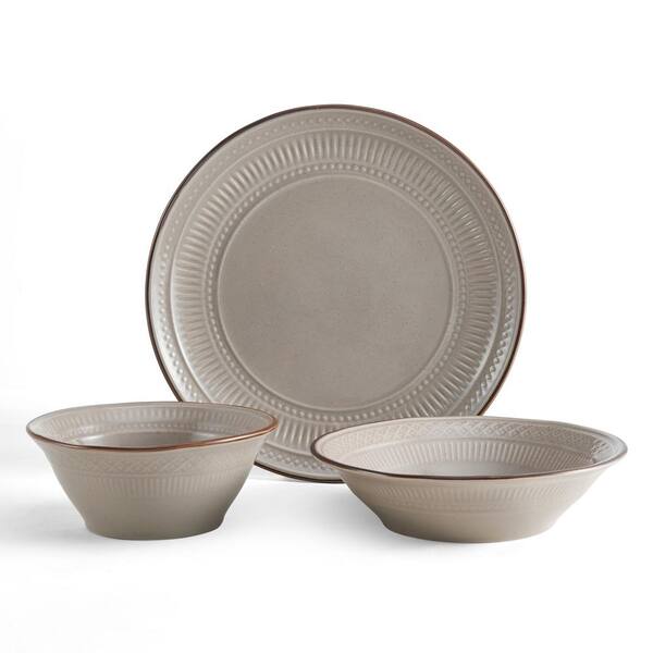 12-Piece Easton Taupe Stoneware Dinnerware Set, (Service For 4)