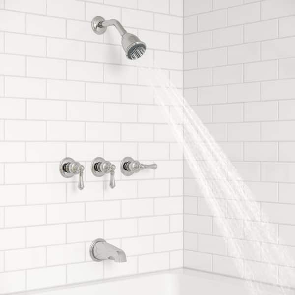 3-Handle 2-Spray Wall Mount Shower Faucet Trim Kit with Metal Handles Polished Chrome (Valve Not Included)