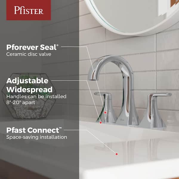 • Widespread bathroom faucet: Accommodates 3-hole countertops