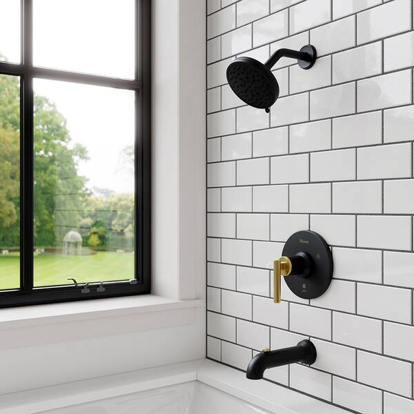 Capistrano Single Handle 6-Spray Wall Mount Tub and Shower Faucet 1.8 GPM 5.5 in. Black/Gold [Valve Included]