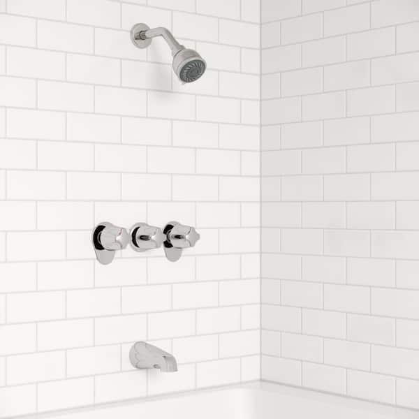 Triple Handle 1-Spray Tub and Shower Faucet 1.8 GPM with Metal Verve Knob Handles in. Polished Chrome (Valve Included)