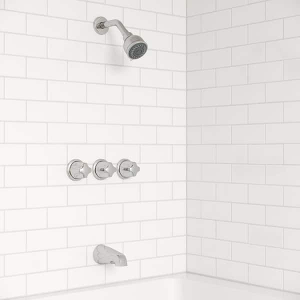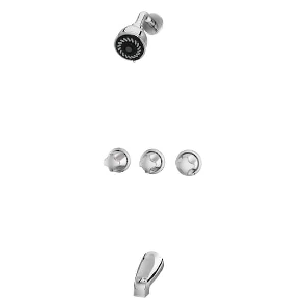Triple Handle 1-Spray Tub and Shower Faucet 2 GPM with Metal Knob Handles in. Polished Chrome (Valve Included)