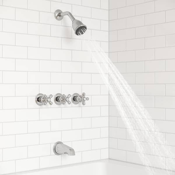 Triple Handle 3-Spray Tub and Shower Faucet Trim 1.8 GPM with Cross Handles in. Polished Chrome [Valve Not Included]