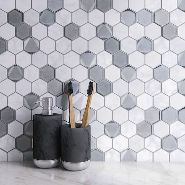 Phantom White 11.82 in. x 12.01 Honeycomb Polished Marble Mosaic Tile Sample