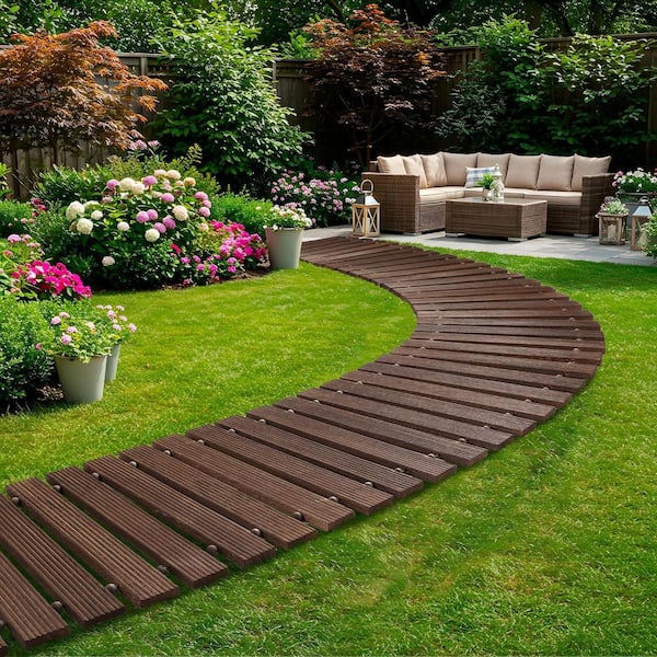 11.5 ft. Roll-Out Wooden Garden Pathway, Weather-Resistant and Non-Slip Patio Path, Brown