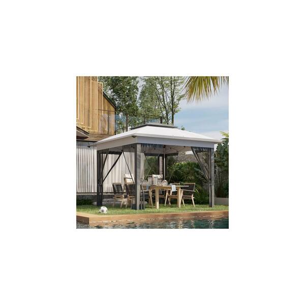 12 ft. x 12 ft. Outdoor Steel Event/Party Pop Up Instant Tent Canopy with Netting and Height Adjustable in Gray
