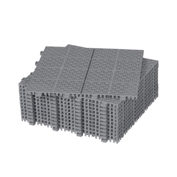 12 in. x 12 in. Square Gray Plastic Outdoor Interlocking Deck Tiles Waterproof All Weather Anti-Slip (12-Pack)