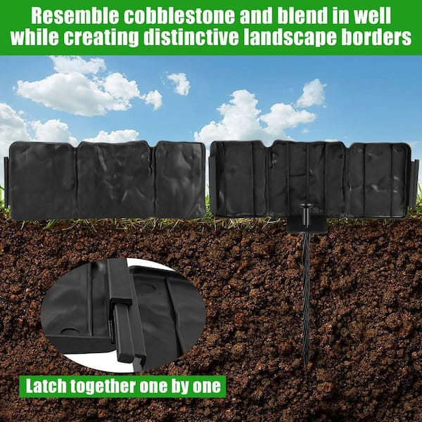 16 ft. Black Stone Effect Plastic Lawn Edging with Anchoring Spikes, 20-Pieces