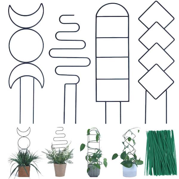 16 in. H Black Metal Garden Plant Trellis, Houseplant Support with 4-Patterns for Vine, Ivy, Flower, Plants