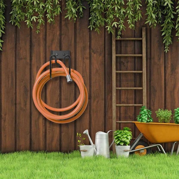 2-Pack Black Heavy Duty Garden Hose Holder Stainless Steel Hose Rack Reel Organizer for Water Hose Extension Cords